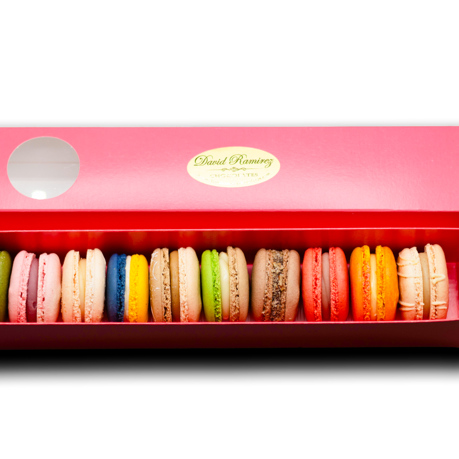 A colorful assortment of 10 delicate, handcrafted macarons with irresistible flavors. Perfect for gifting or treating yourself.